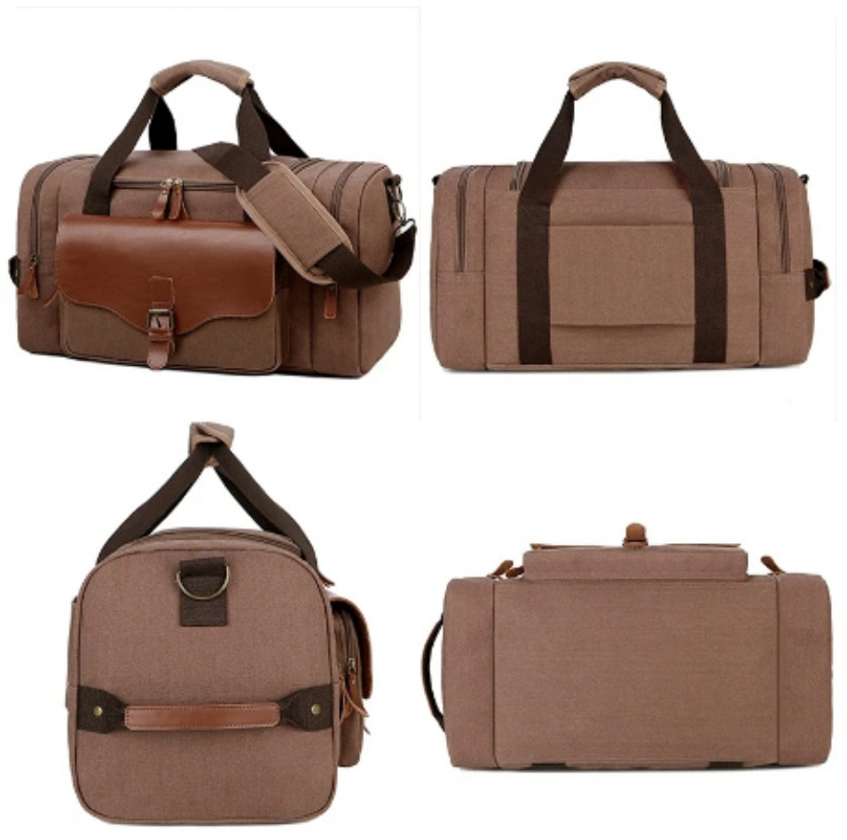 The water-resistant canvas material safeguards your belongings from spills or rain, ensuring you arrive at your destination with your items intact and dry. Padded hand straps and adjustable, detachable shoulder straps allow you to carry your bag comfortably for extended periods without straining your neck, back, or shoulders.