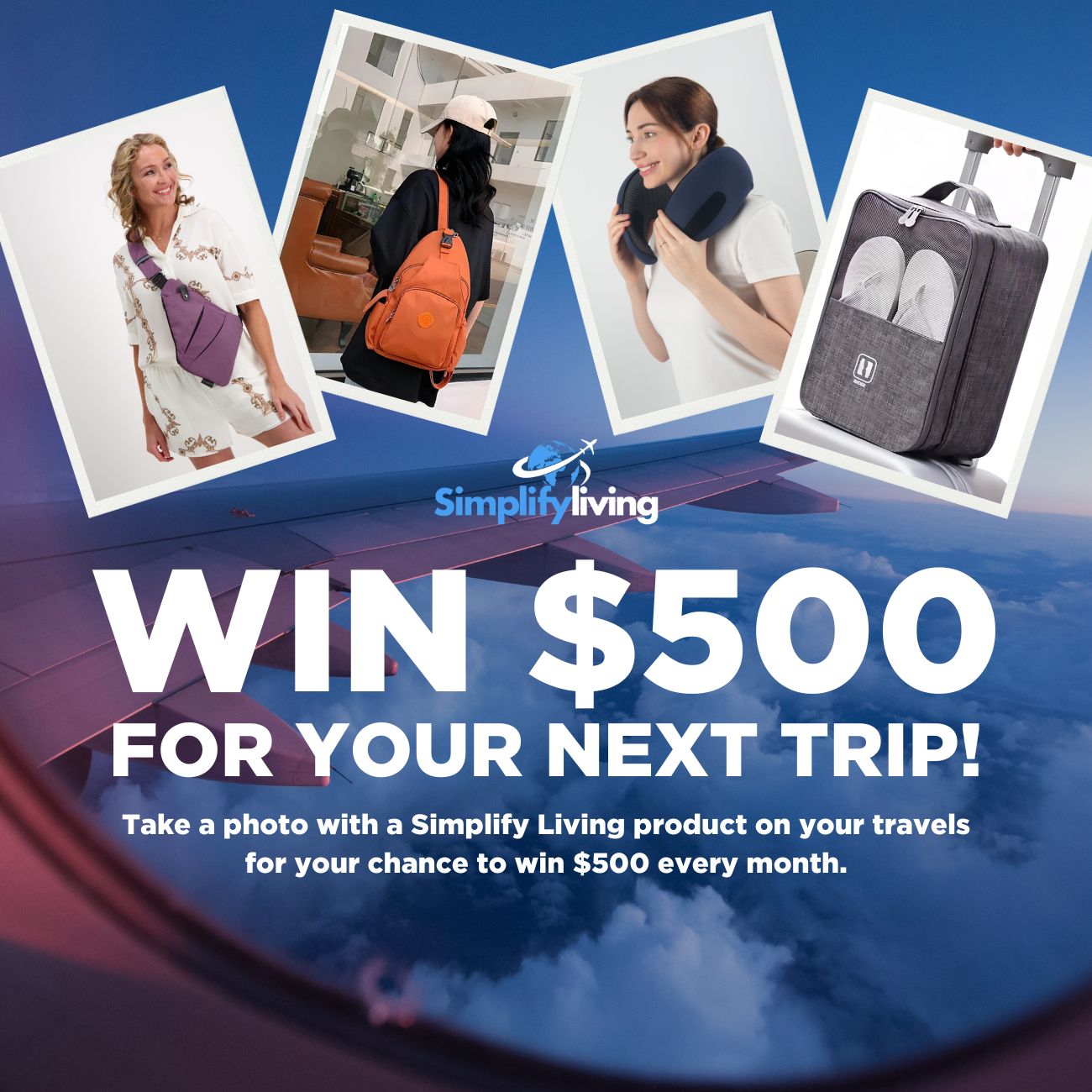 Take a photo with a Simplify Living product on your travels for your chance to win $500 every month.